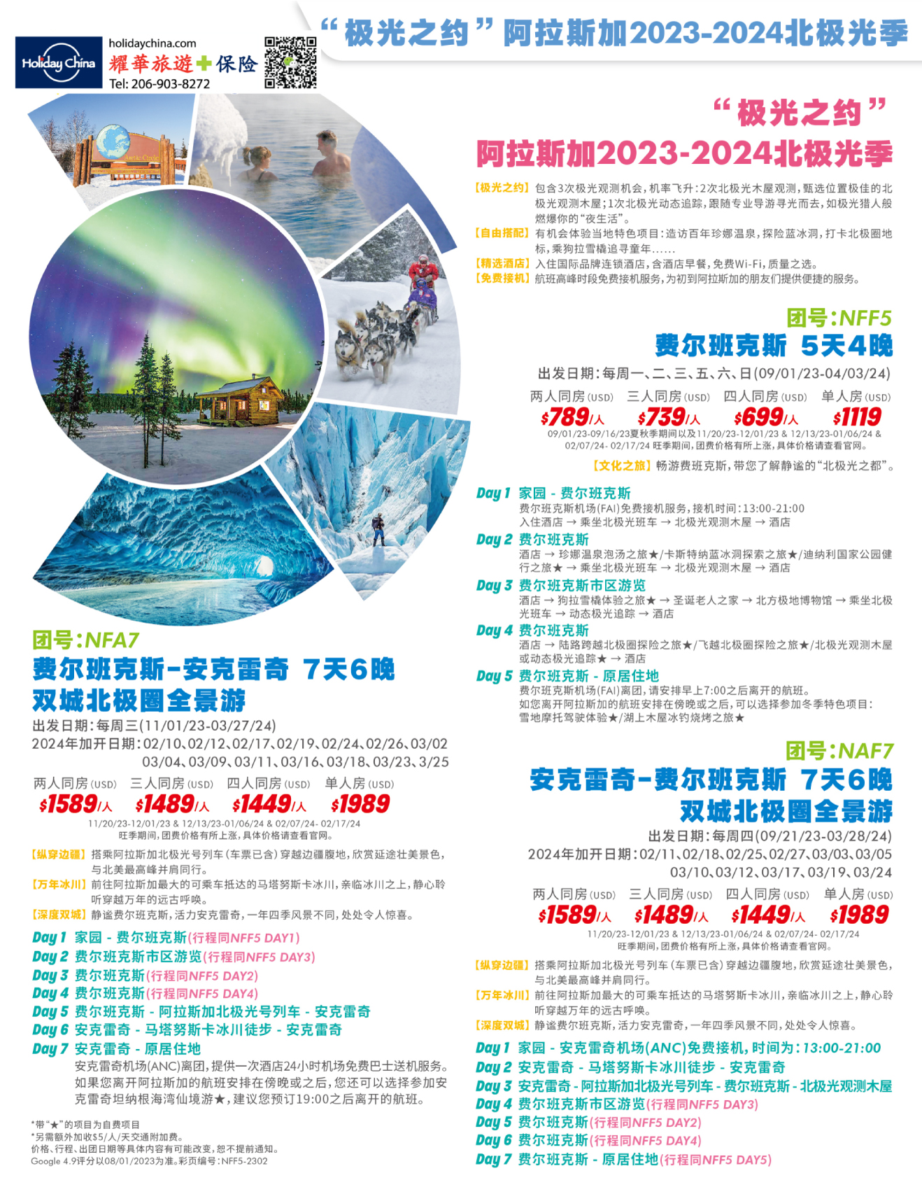NFA7 “极光之约”阿拉斯加2023-2024北极光季 费尔班克斯 - 安克雷奇7天6晚 双城北极圈全景游