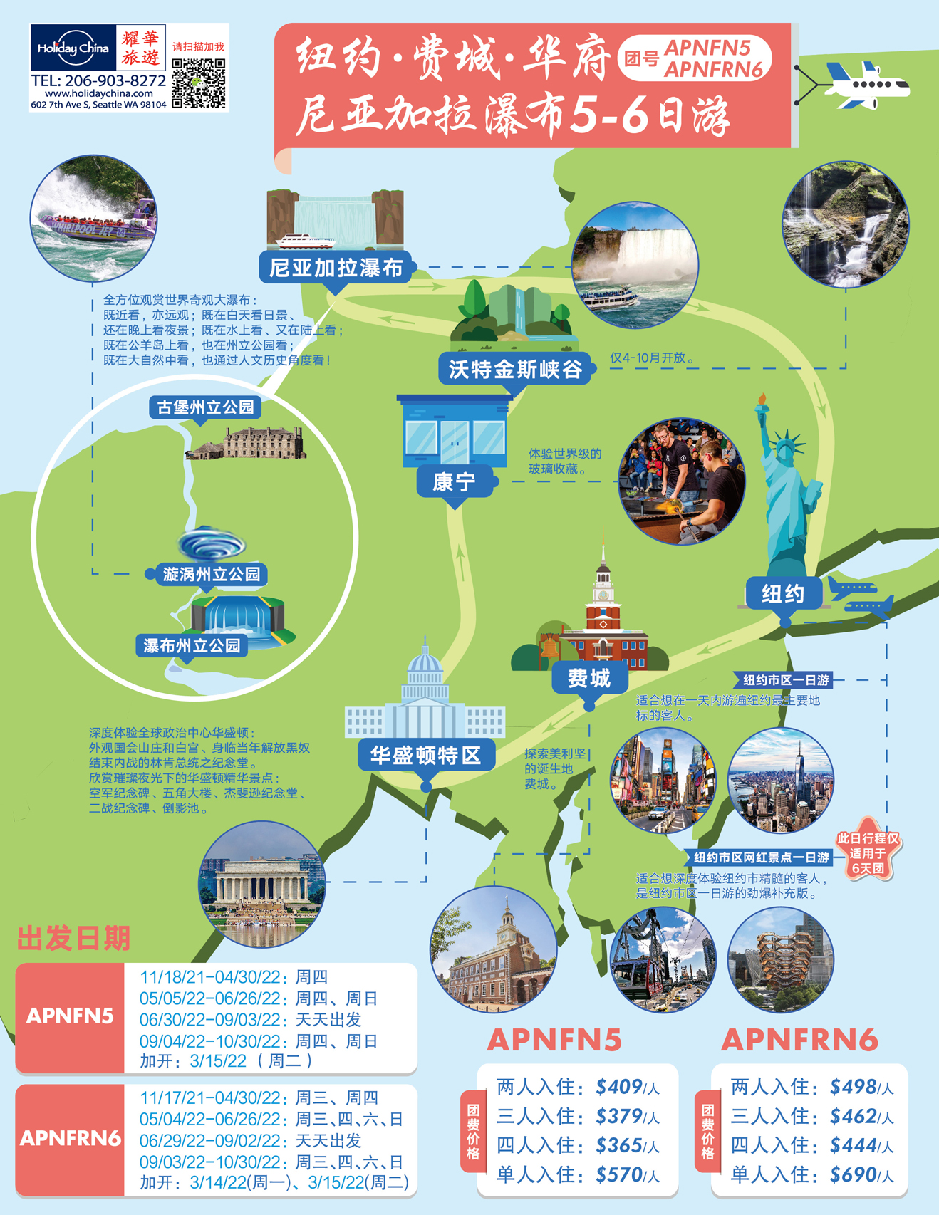 APNFN5 纽约+华盛顿特区+尼亚加拉瀑布 5日游