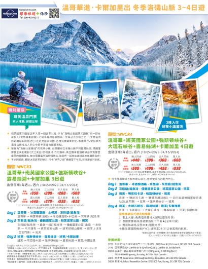 SVB5-W【银榜惠享】冬季洛基山脉丨西雅图出发+温哥华+甘露市+优鹤国家公园+班芙国家公园+冰川国家公园 5日游