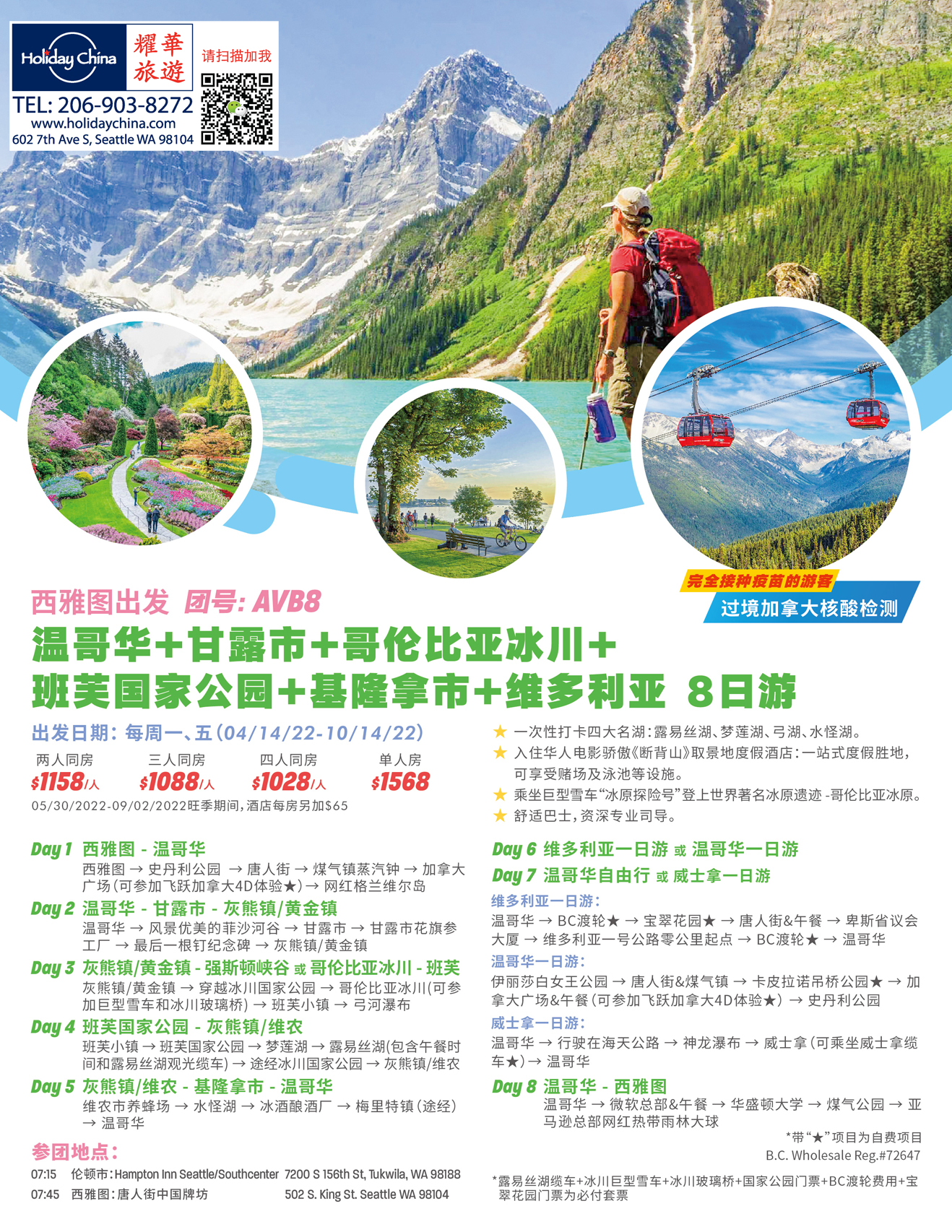 AVB8【银榜惠享】温哥华+甘露市+班芙国家公园+露易丝湖+维多利亚 8日游
