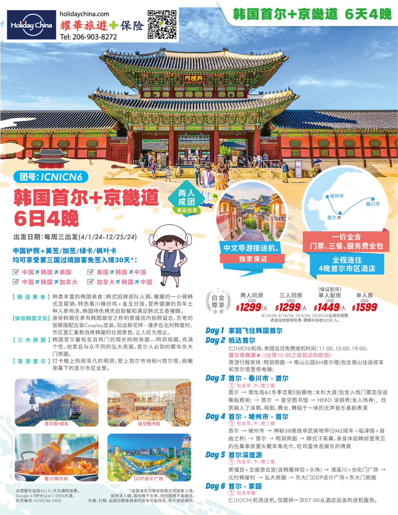 ICNICN6【白金尊享】韩国首尔+京畿道 6天4晚游