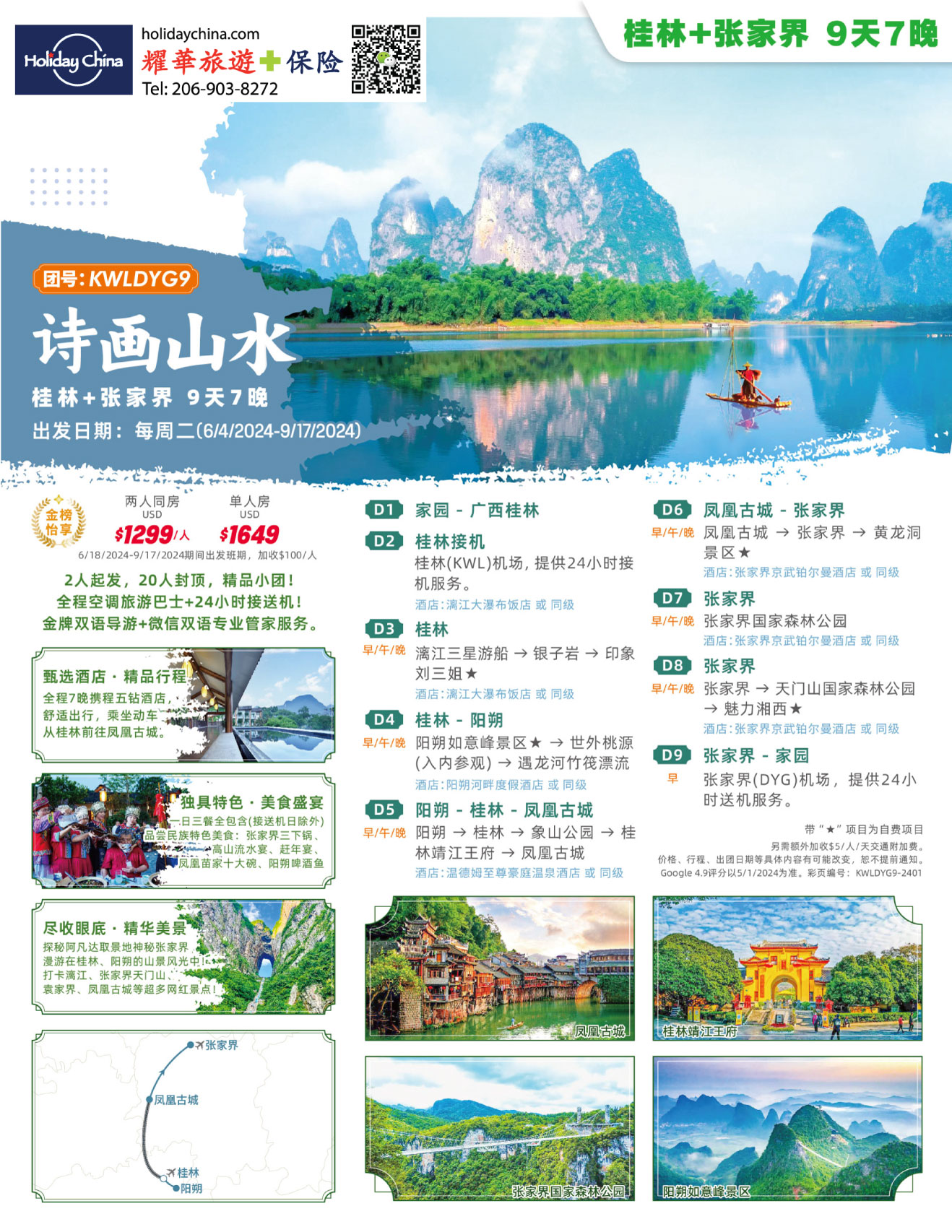 KWLDYG9【金榜怡享】中国 桂林+张家界 9天7晚跟团游