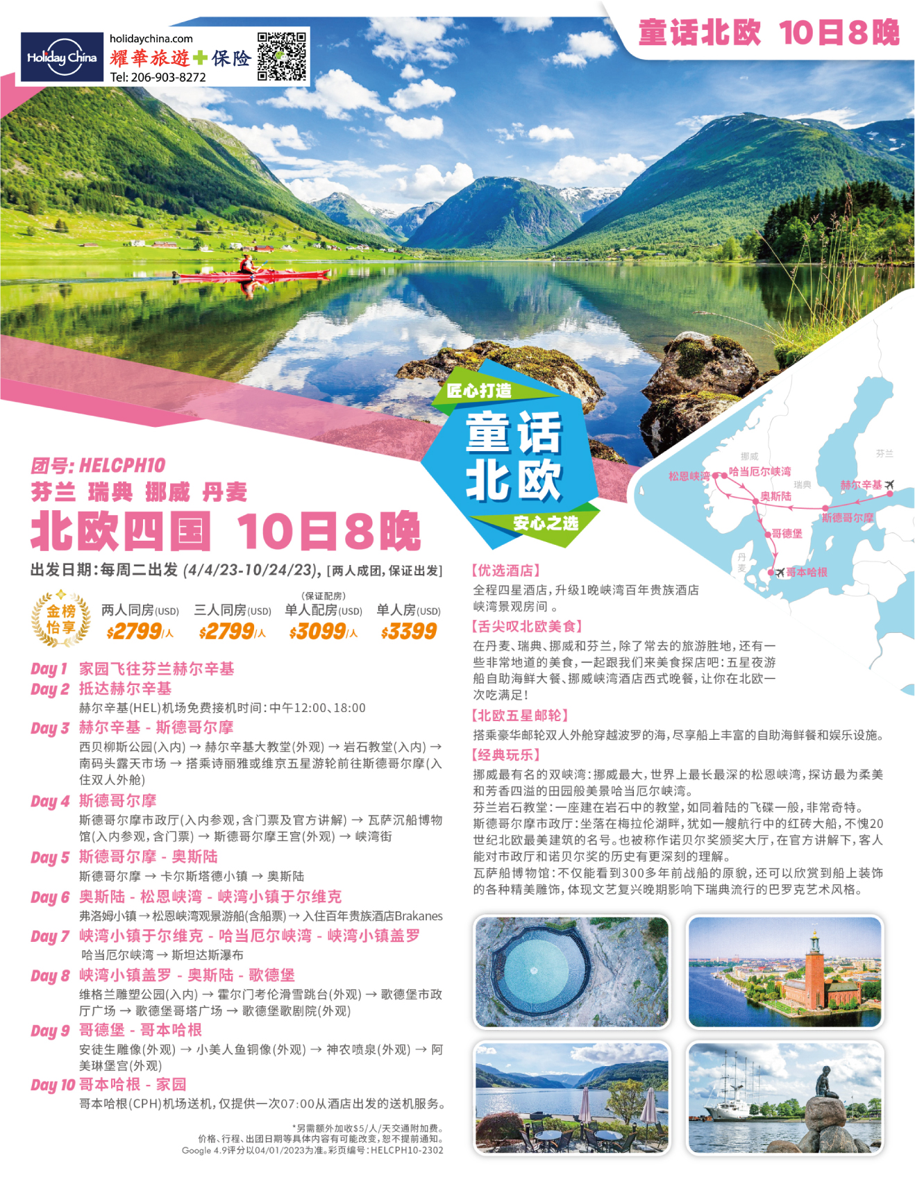 HELCPH10【金榜怡享】童话北欧丨赫尔辛基+斯德哥尔摩+奥斯陆+松恩峡湾+哈当厄尔峡湾+歌德堡+哥本哈根 10天8晚游