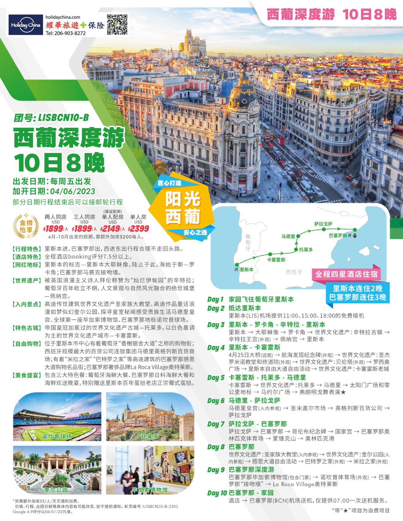 LISBCN10B【金榜怡享】阳光西葡丨里斯本+辛特拉+托莱多+马德里+萨拉戈萨+巴塞罗那 10天8晚游